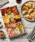 Adicionales: Aceitunas verdes y negras 000 (con carozo), pepinos agridulces, tomates secos, uvas, miel, almendras, nueces, 4 baguettes de masa madre.